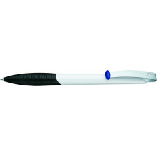 Шариковая авторучка с прозрачным корпусом, эргономичной мягкой зоной грифа и широким изогнутым пласт..