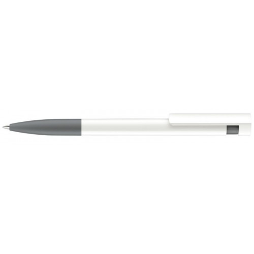Шариковая ручка с нажимным механизмом. Полированная поверхность корпуса, белый корпус, цветная мягкая зона грифа под цвет верхней части, Стержень magic flow c синей или черной пастой. Толщина штриха 1.0 мм.