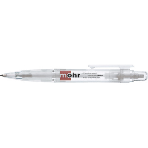 Шариковая авторучка из матово-прозрачного пластика с широкой мягкой зоной грифа. Качественный стержень с синей или чёрной пастой.