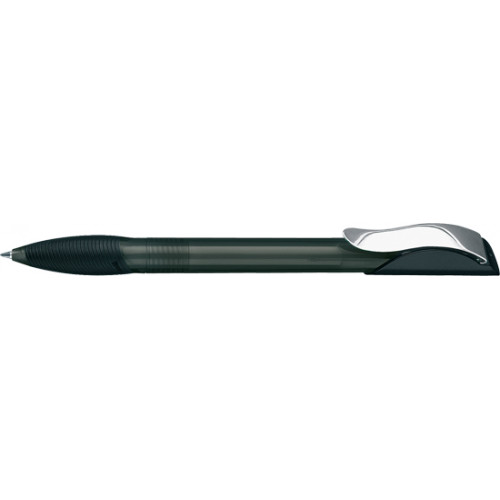 Шариковая авторучка с прозрачным корпусом, эргономичной мягкой зоной грифа и широким металлическим клипом. Качественный суперобъёмный стержень с синей или чёрной пастой.