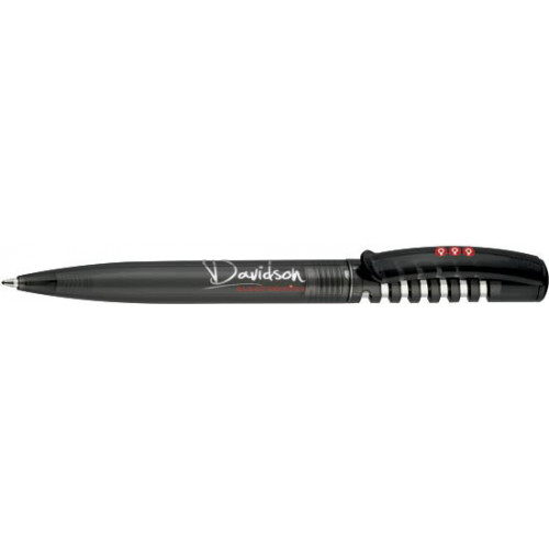 Шариковая авторучка с оригинальной механикой нажимного колпачка. Блестящий прозрачный корпус и прозрачный клип в комбинации с блестящей металлизированной внутренней деталью под спиралью. Качественный суперобъёмный стержень с синей или чёрной пастой.