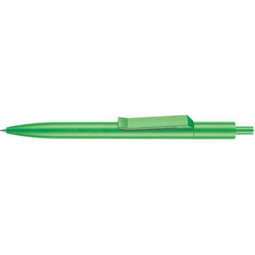Шариковая ручка из блестящего непрозрачного пластика. Обширная поверхность для печати. Качественный стержень с синей или черной пастой.