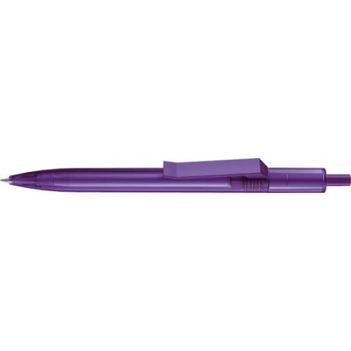 Шариковая ручка из блестящего прозрачного пластика. Клип/кнопка выполнены из блестящего непрозрачного пластика. Обширная поверхность для печати. Качественный стержень с синей или черной пастой.