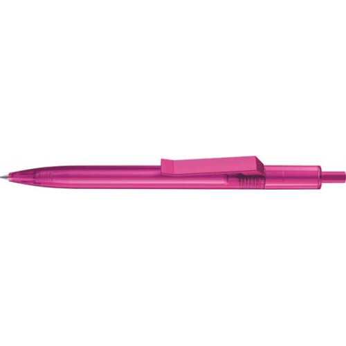 Шариковая ручка из блестящего прозрачного пластика. Клип/кнопка выполнены из блестящего непрозрачного пластика. Обширная поверхность для печати. Качественный стержень с синей или черной пастой.