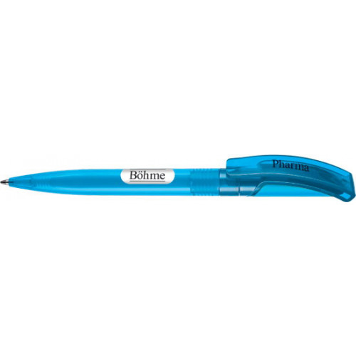 Шариковая ручка с поворотным механизмом. Элегантный изогнутый клип. Прозрачный корпус, непрозрачные детали клипа. Качественный суперобъемный стержень G2 с синей или черной пастой.